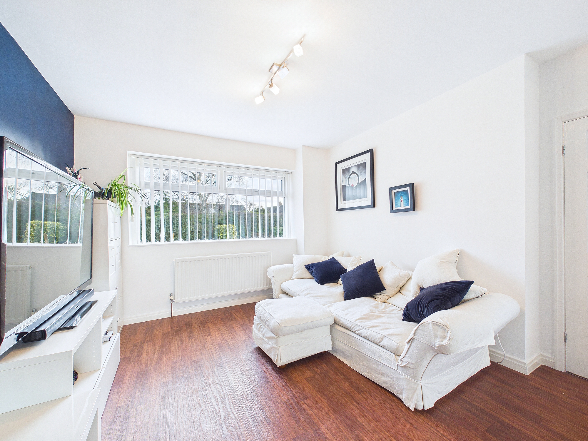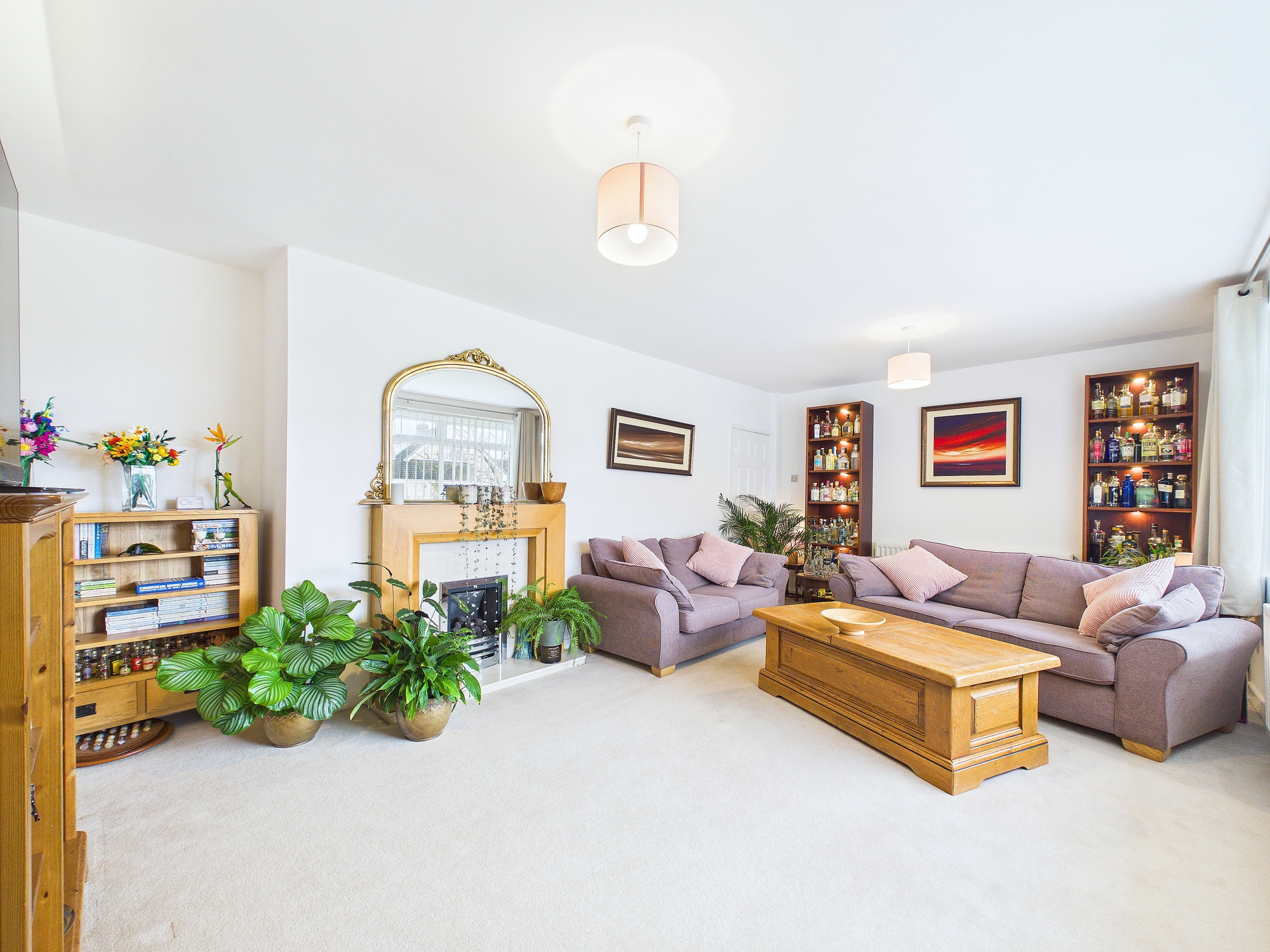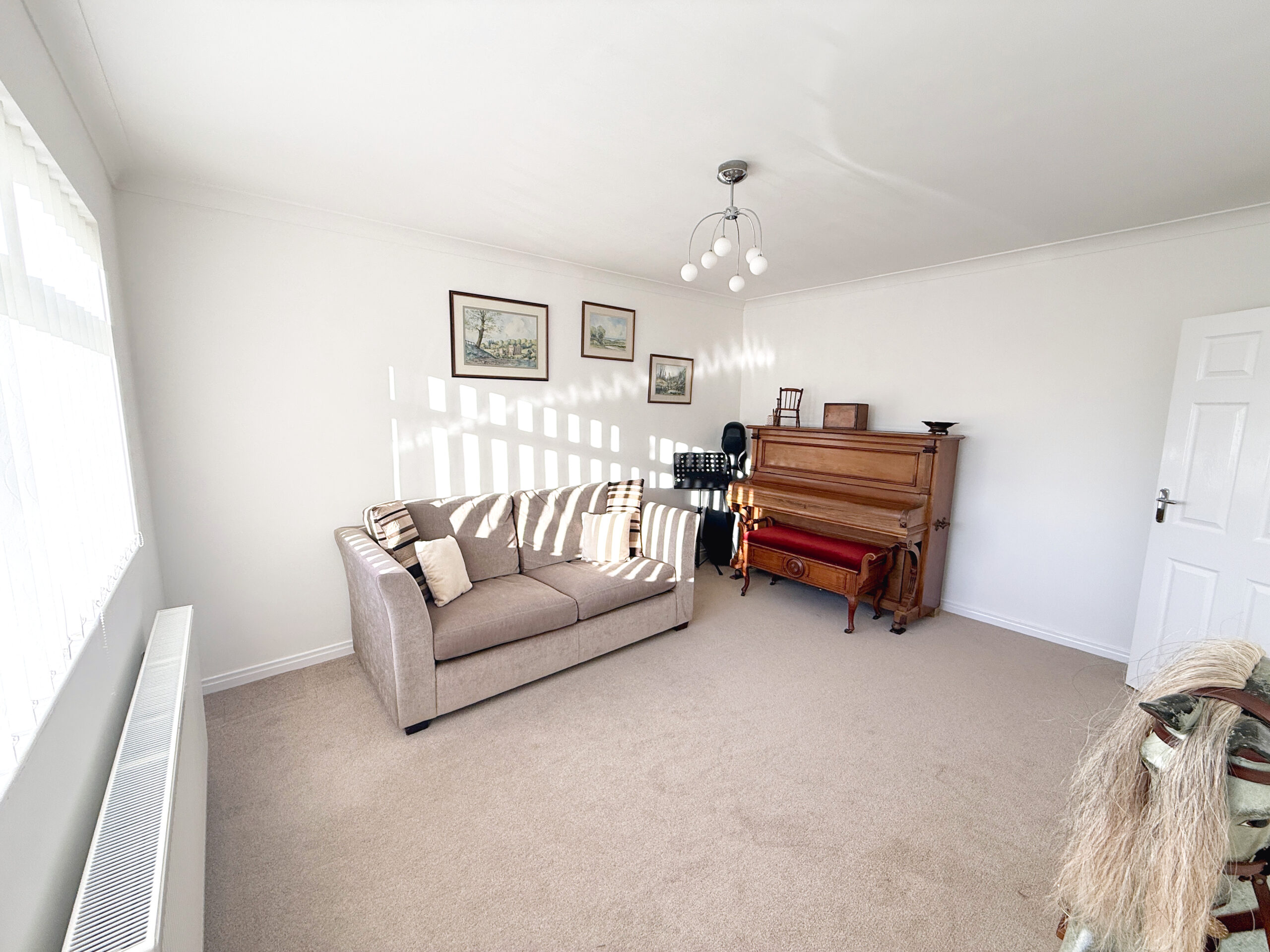 A lovely large picture window overlooks the front garden, filling the room with natural light. The central fireplace creates a cosy, inviting spot to unwind in the evenings, and a door leads to the kitchen dining room, adding an extra touch of everyday convenience.