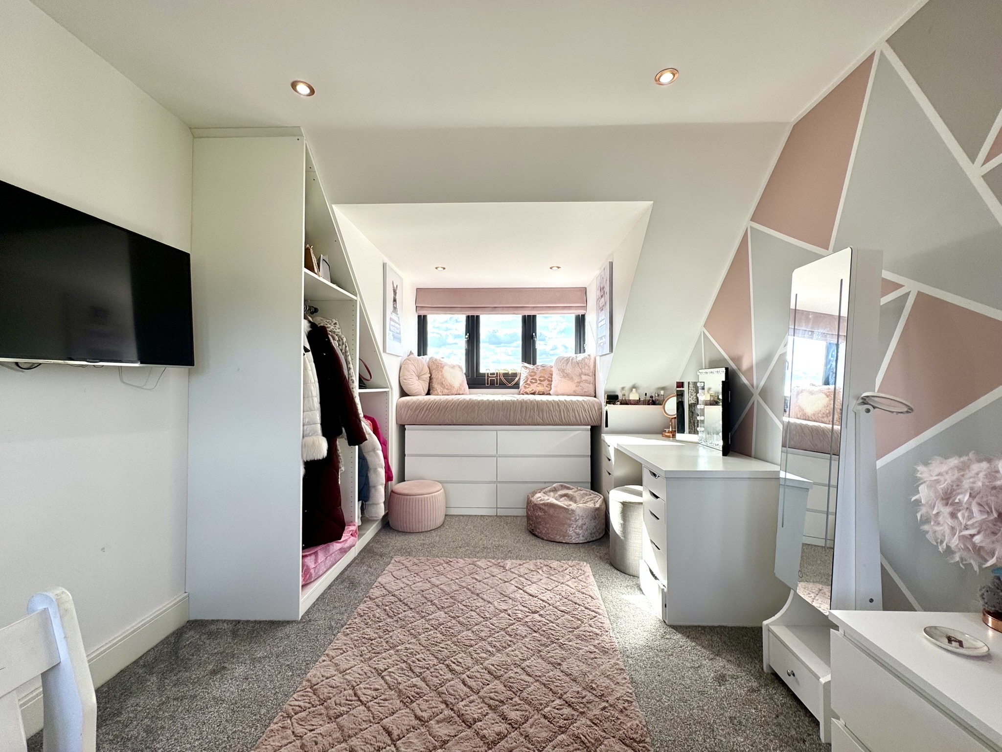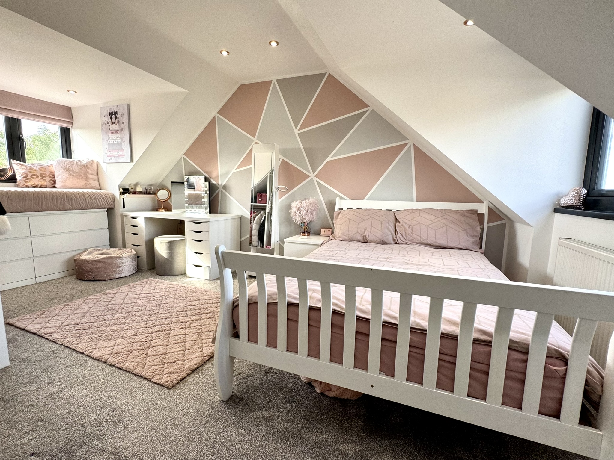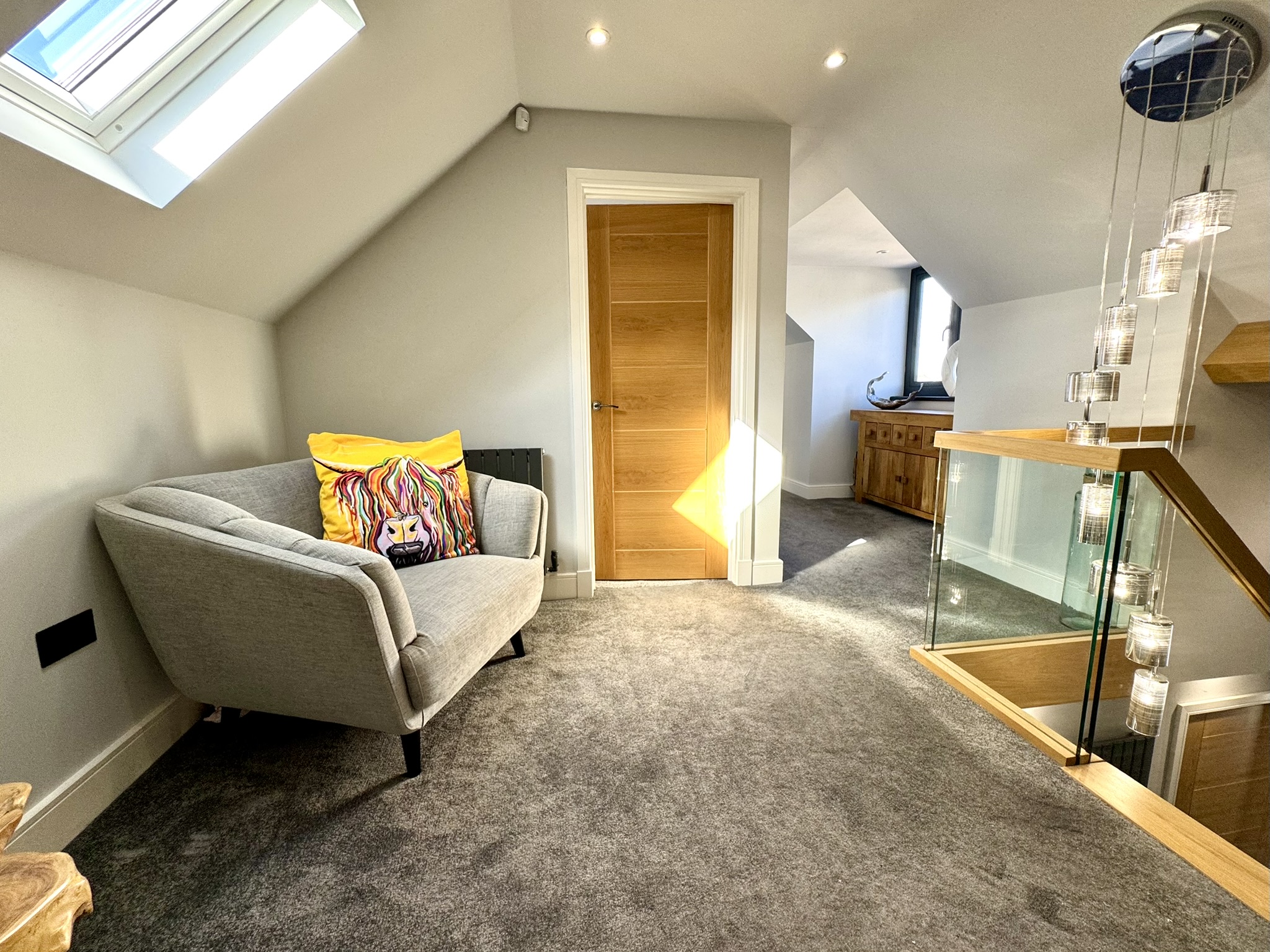 Extremely bright with dual aspect Velux windows, and spacious enough for each room to feel quite private. Doors to all rooms.