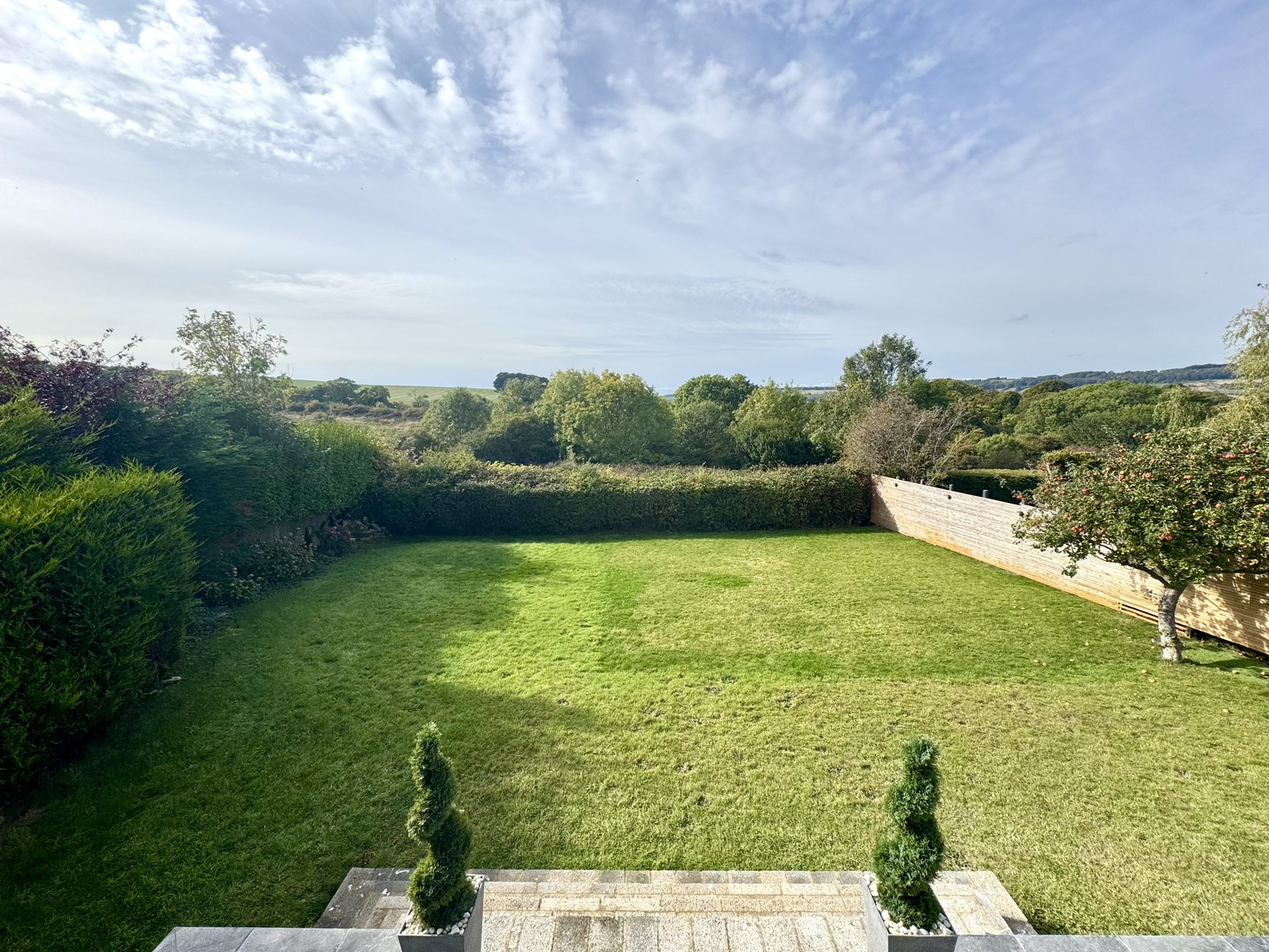The south-west facing rear garden is exceptionally generous and has a real feeling of privacy. Laid mainly to lawn, it has steps up to the raised terrace – perfect for entertaining and enjoying the open aspect. This garden is a joy as it is but equally provides great opportunities for the keen gardener.