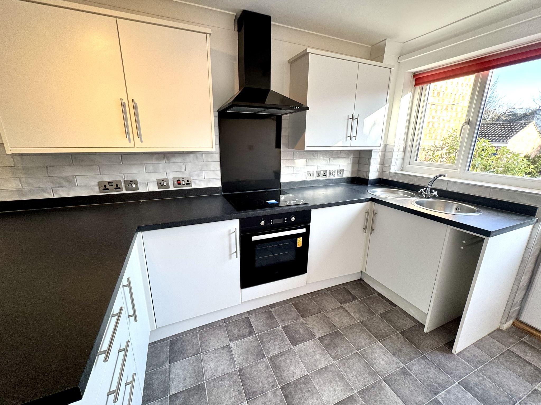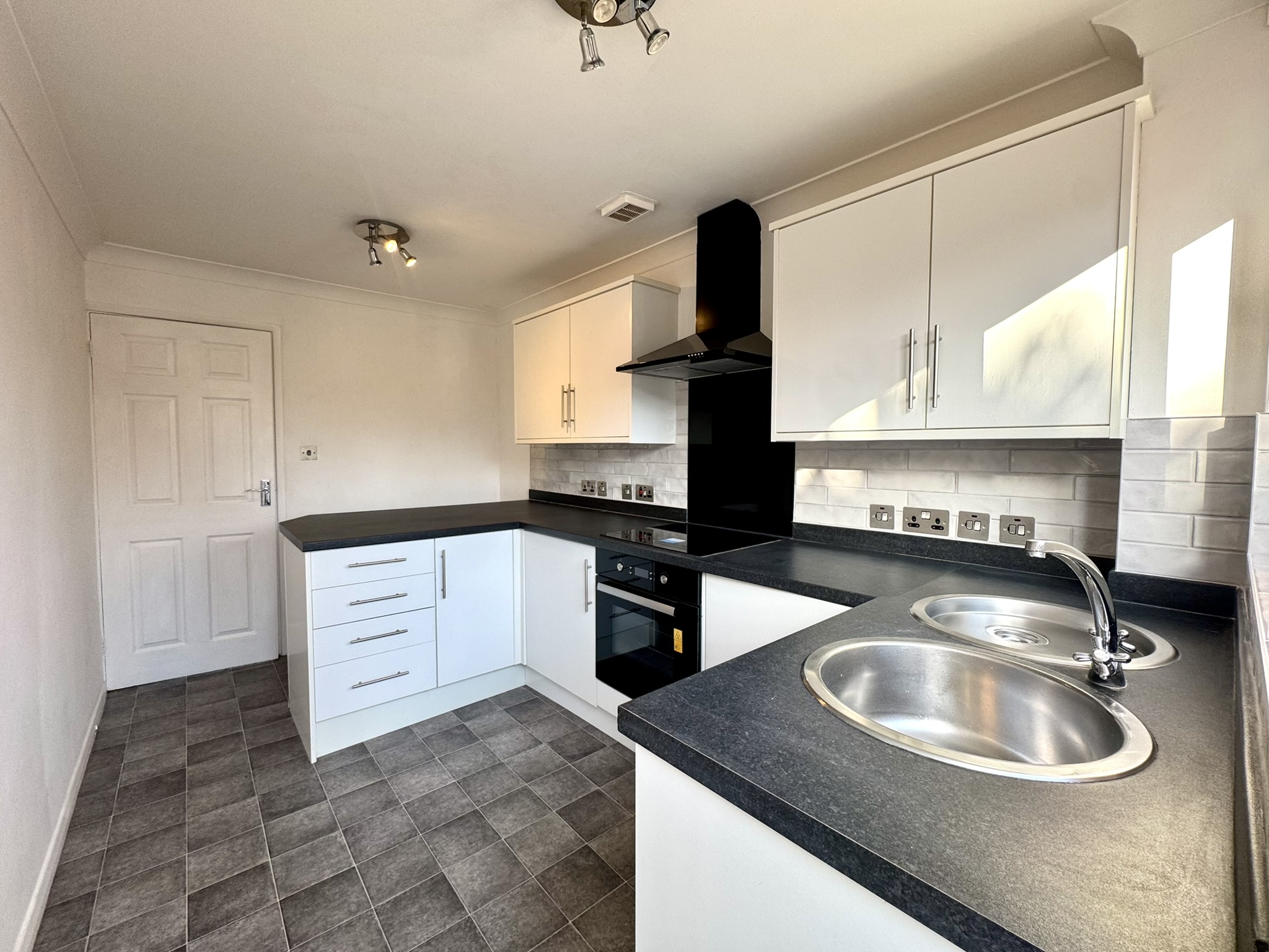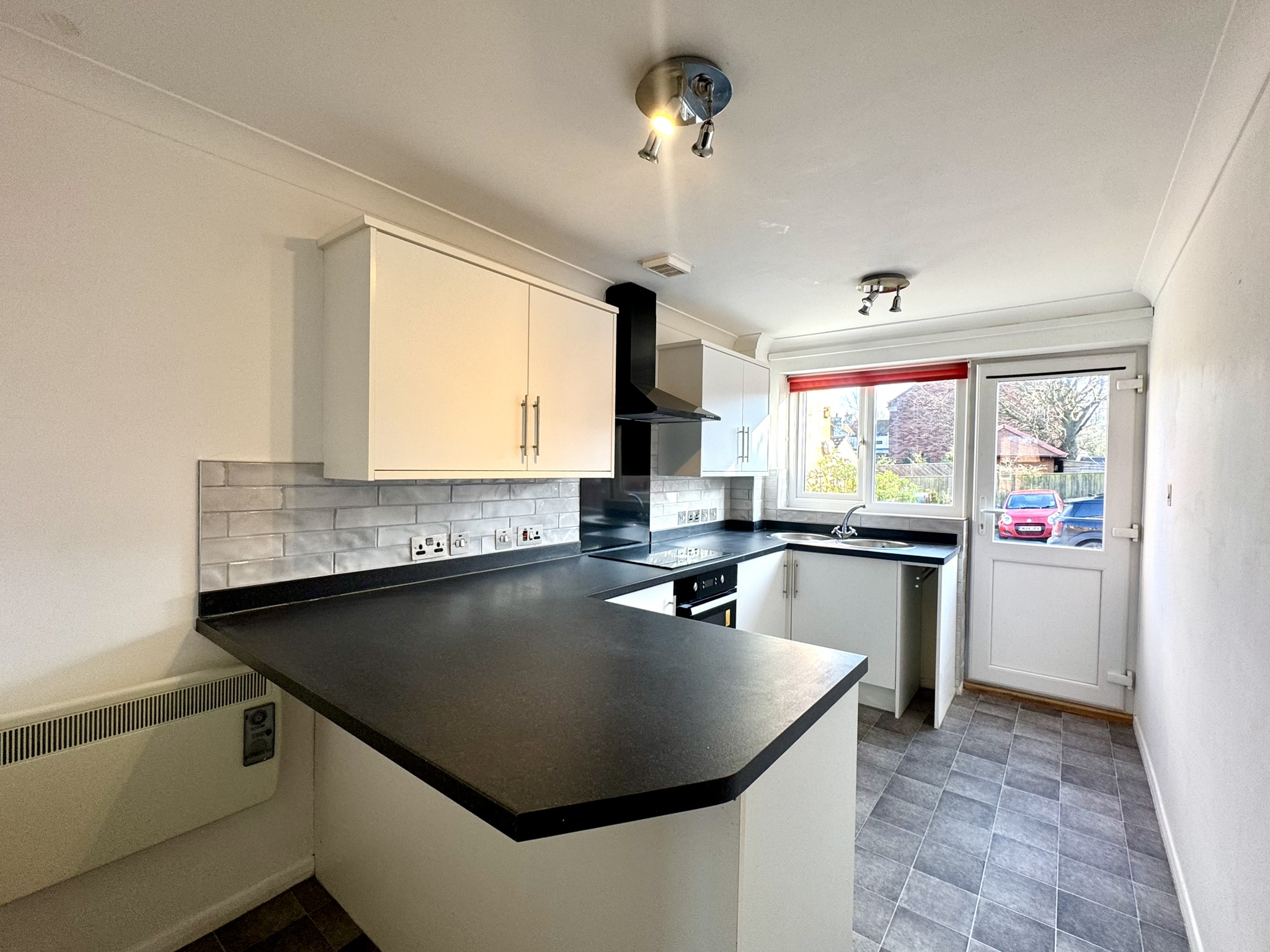 Fitted with a range of wall and base units, worktops and integrated appliances:  fridge and freezer, oven, electric ceramic hob and extractor hood. The kitchen also features a breakfast bar area, part tiled walls and a window to the rear aspect – flooding the room with light. A part glazed door leads to the rear, providing access to the allocated parking.